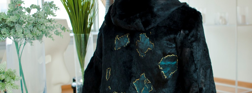 Giacchetto in lapin dipinto a mano per Manifattura G di Graziano Mazzoni, Bassa – Cerreto Guidi.